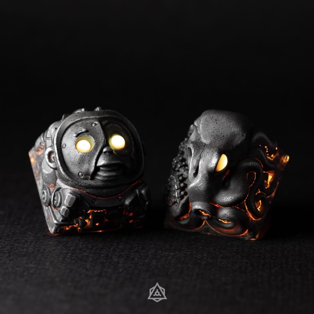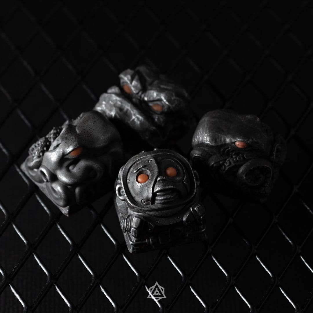 Element 115 features four of our favorite sculpts, in three different uv underglow accent colors. With this release we wanted to achieve a rough, cold-cast metalic finish which shows its true colors and illumination when manipulated with uv light. We hope you enjoy them as much as we do 🙂